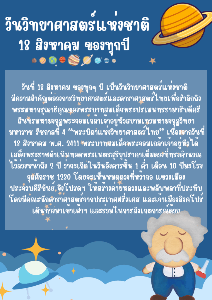 วันที่ 18 สิงหาคม ของทุกๆ ปี เป็นวันวิทยาศาสตร์แห่งชาติ