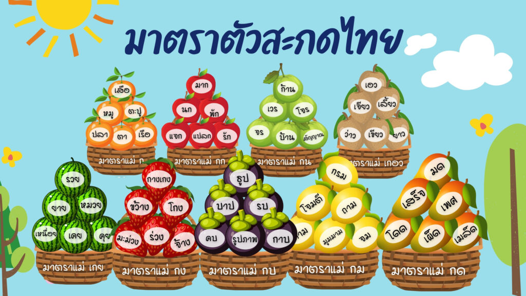 - แม่เกย ใช้ ย สะกด เช่น สาย ลอย โปรย เฉย ปุ๋ย ฯลฯ